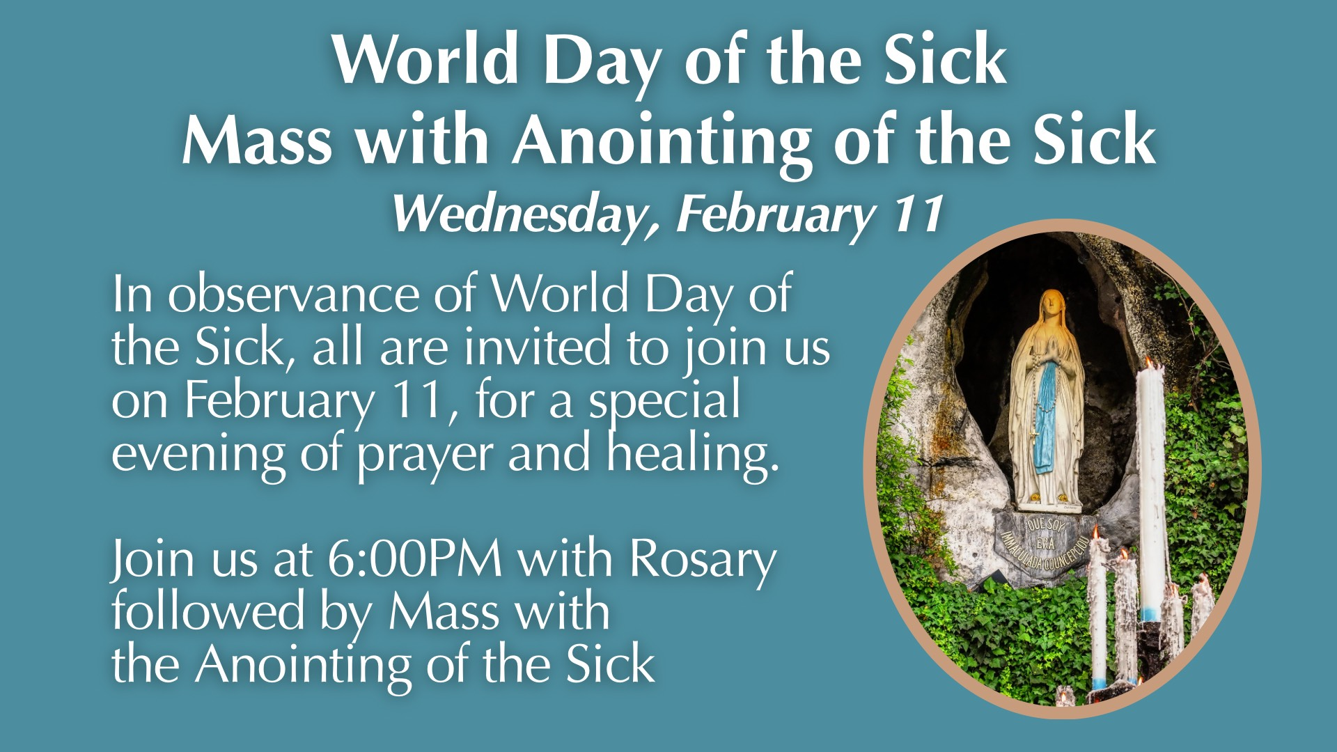 At the end of Mass, we will have a candlelight procession to the Marian Grotto. Those who are ill, elderly, or facing serious health challengers are especially encouraged to attend, along with their families and caregivers.
